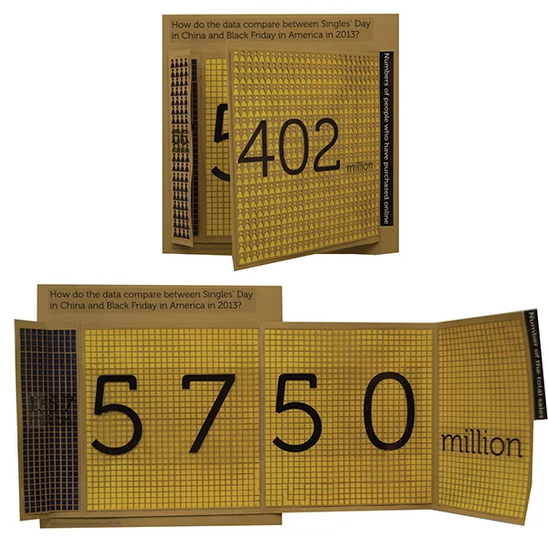The outer cover shows the no. of people who participated in Singles Day in China versus those who participated in Black Friday in the US.